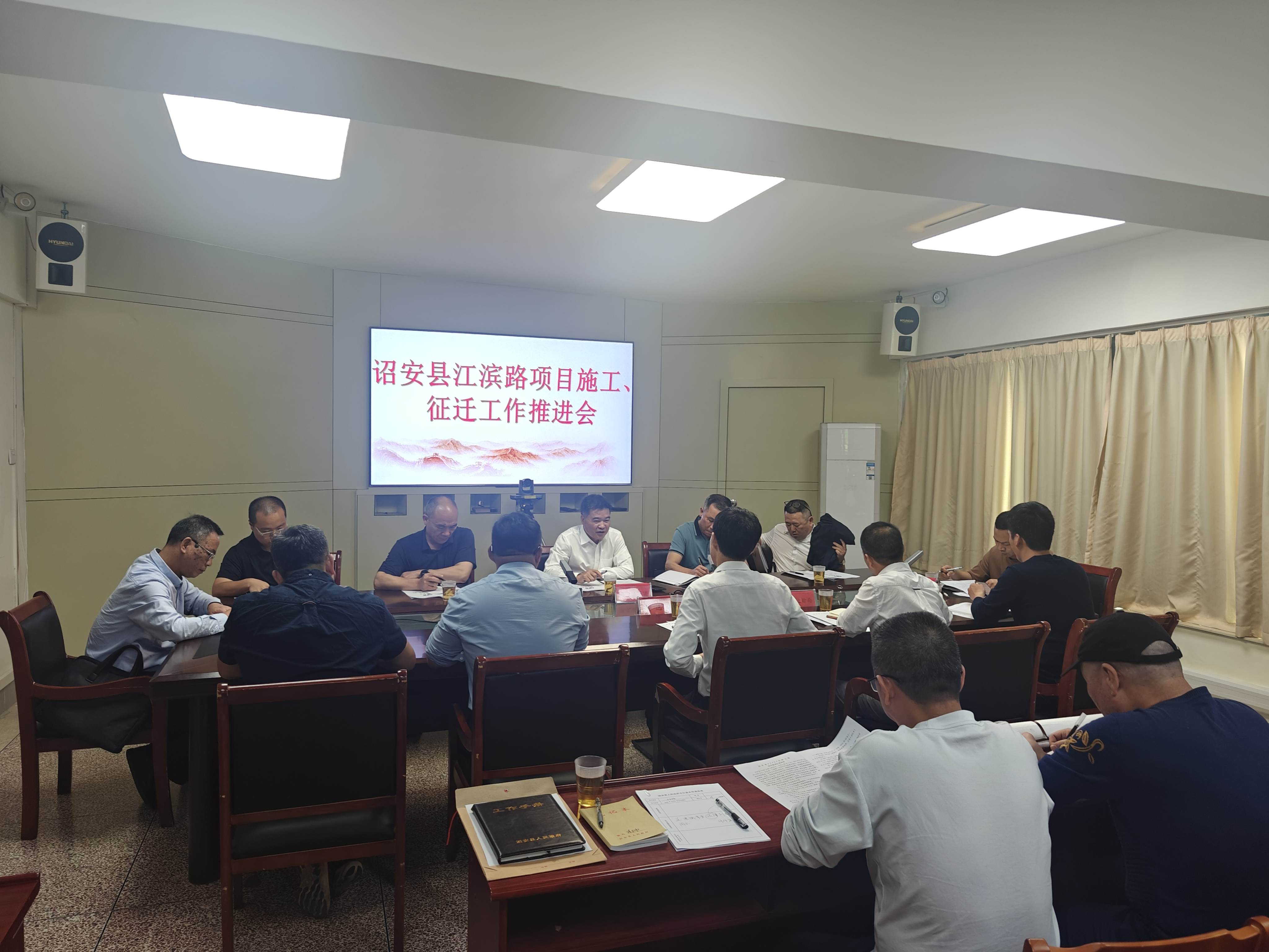 林長河總經(jīng)理一行與詔安縣副縣長黃選謙到縣政府組織召開項目推進會,協(xié)調(diào)解決關(guān)于工程進度安排、征地拆遷等項目施工中存在的問題。